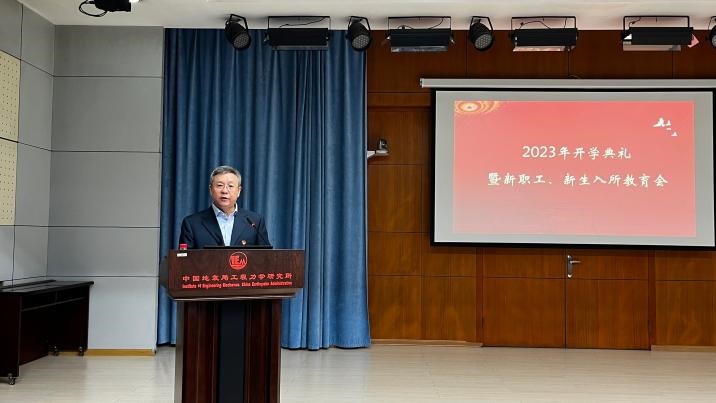 開學典禮在莊嚴的國歌聲中正式開始。李山有對新職工和新生的到來表示歡迎,勉勵大家要奮斗青春,做志存高遠的追夢人、勇立潮頭的趕考人、滴水穿石的傳承人、越戰越勇的攀登人,認真學習、踏實科研,為我國防震減災事業現代化貢獻力量。