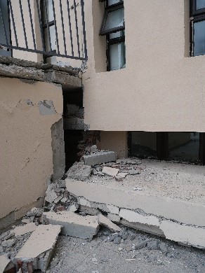 圖1 某學校隔震結構(隔震溝發生碰撞)