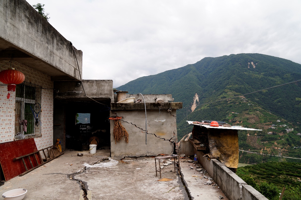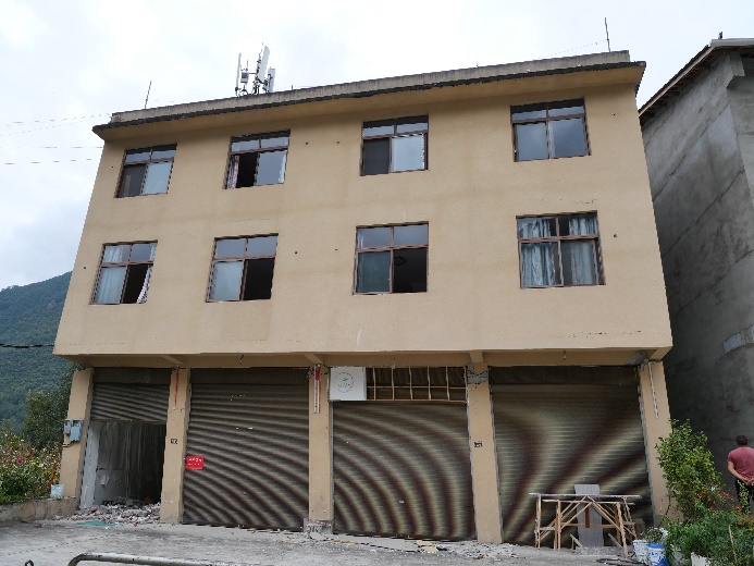 石棉線科考組(戴君武、周寶峰、柏文)圍繞51SMXSC-T247151SMM等強震臺站,開展周邊建筑震害調查。SC-T2471臺站在本次地震中記錄到的加速度記錄峰值最大,現場考察發現該臺站位于山包之上,地形對其地震響應具有較為明顯的放大作用。此外,地基失效是造成房屋破壞的重要原因,由于山地地形限制,部分民房建于山坡上,地震時結構基礎土體沿山坡向下發生滑動,造成基礎局部失效,進而引起上部結構破壞。