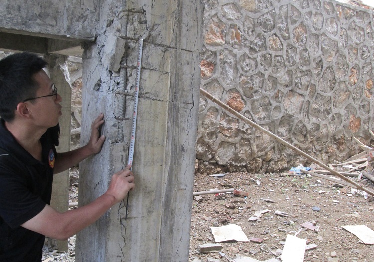 用尺子測(cè)量鋼筋混凝土結(jié)構(gòu)構(gòu)件破壞位置的鋼筋直徑、間距和混凝土保護(hù)層厚度、裂縫寬度,測(cè)量房屋的樓層變形,拍照留存……林旭川和科研人員們對(duì)每一處破損的房屋都不放過,以獲取量化的結(jié)構(gòu)參數(shù)與破壞特征參數(shù)。