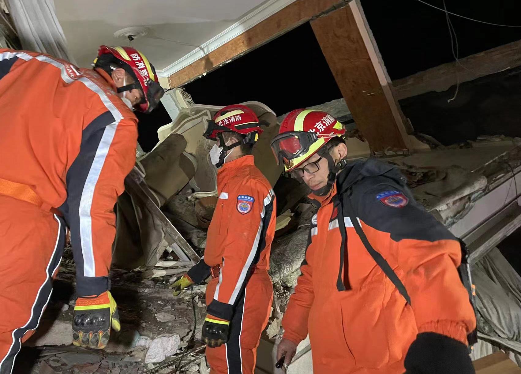 林旭川(左一)在土耳其地震救援現(xiàn)場(chǎng)