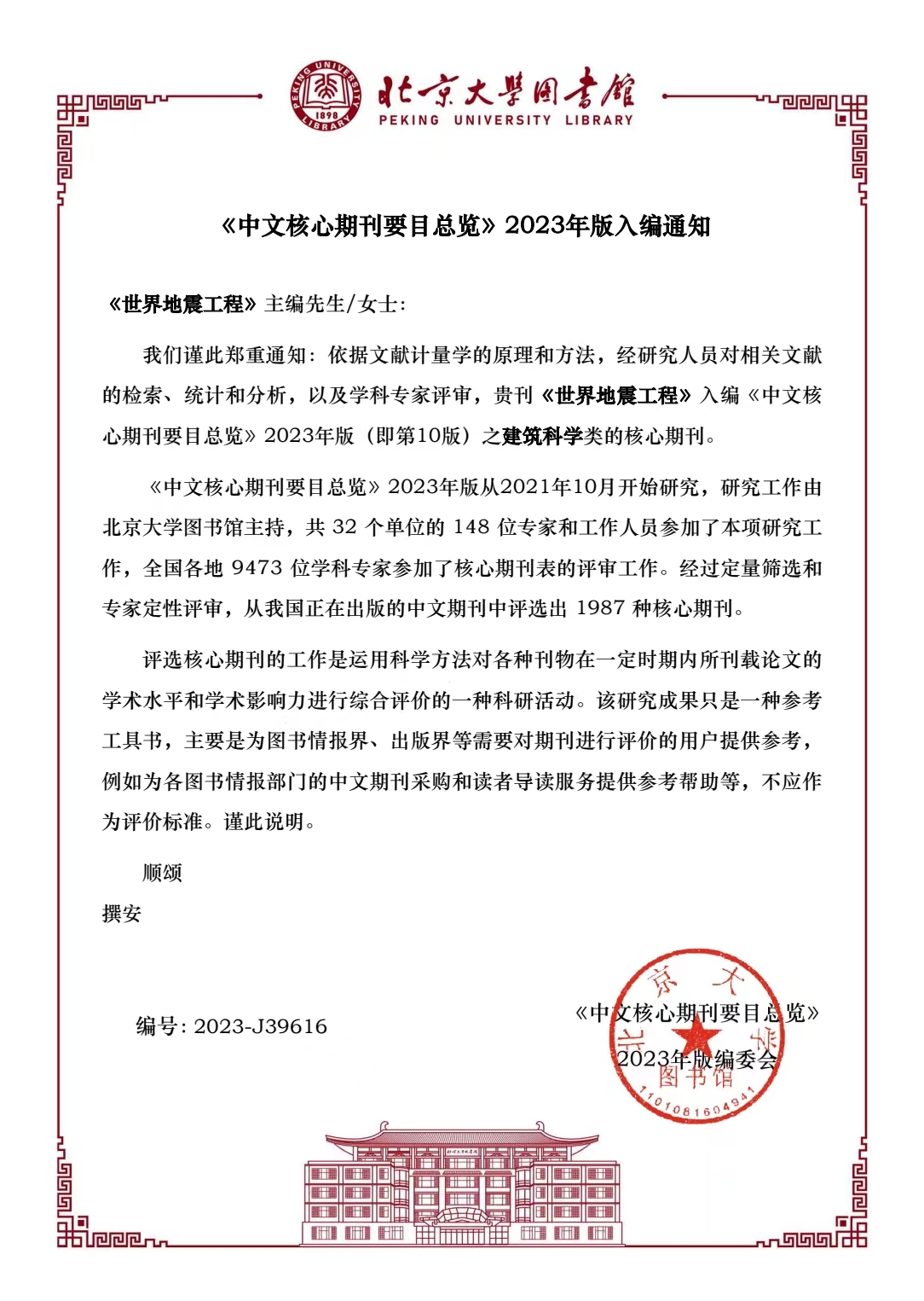近日,接《中文核心期刊要目總覽》2023年版編委會通知,我所主辦的三本中文刊《自然災(zāi)害學(xué)報》《地震工程與工程振動》《世界地震工程》再次入編《中文核心期刊要目總覽》。依據(jù)文獻(xiàn)計量學(xué)的原理和方法,經(jīng)研究人員對相關(guān)文獻(xiàn)的檢索、統(tǒng)計和分析,以及學(xué)科專家評審,《自然災(zāi)害學(xué)報》入編“環(huán)境科學(xué)”類核心期刊,《地震工程與工程振動》《世界地震工程》入編“建筑科學(xué)”類核心期刊。